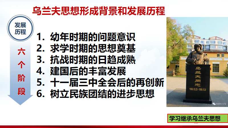 在悠扬的草原音乐声中,支部委员分别深情地从乌兰夫同志的革命进步历程、思想形成过程、对党和国家以及形成民族区域自治制度促进民族团结等多个角度介绍了乌兰夫同志革命的、战斗的、英雄的、伟大的一生。