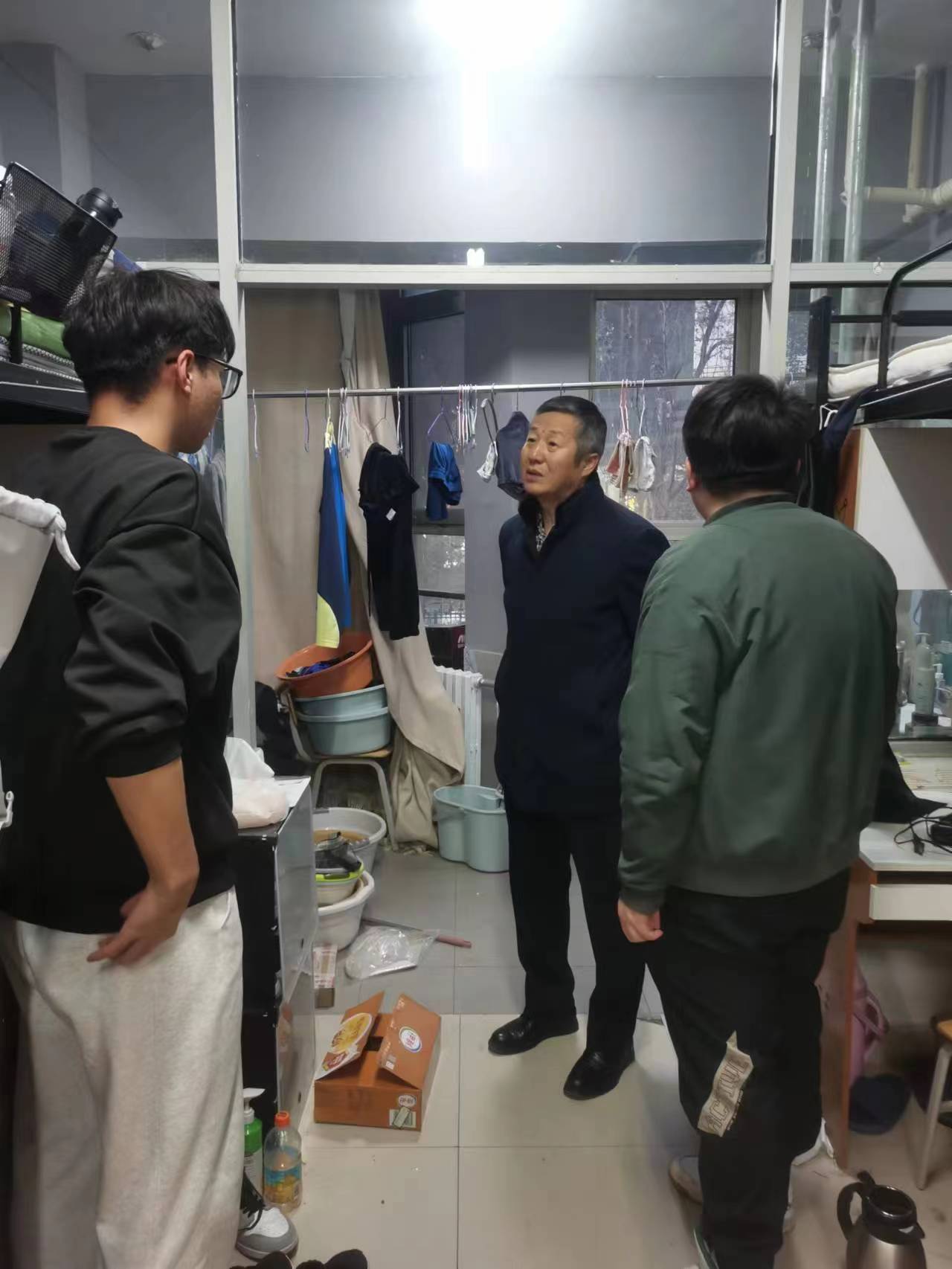 2023年11月19日,ok1188诸侯快讯官方领导班子带队,与辅导员、班主任对学生宿舍进行安全卫生检查。