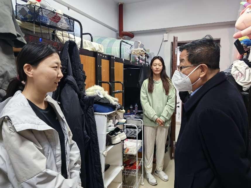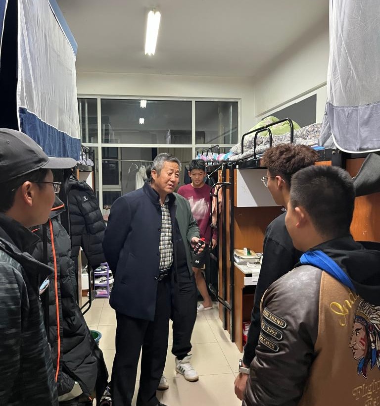 党委书记温毅刚、院长王文杰、学工办副主任赵郑、辅导员呼日查、辅导员姜蕊、班主任李陆、黎欣荣、王子怡参加检查。