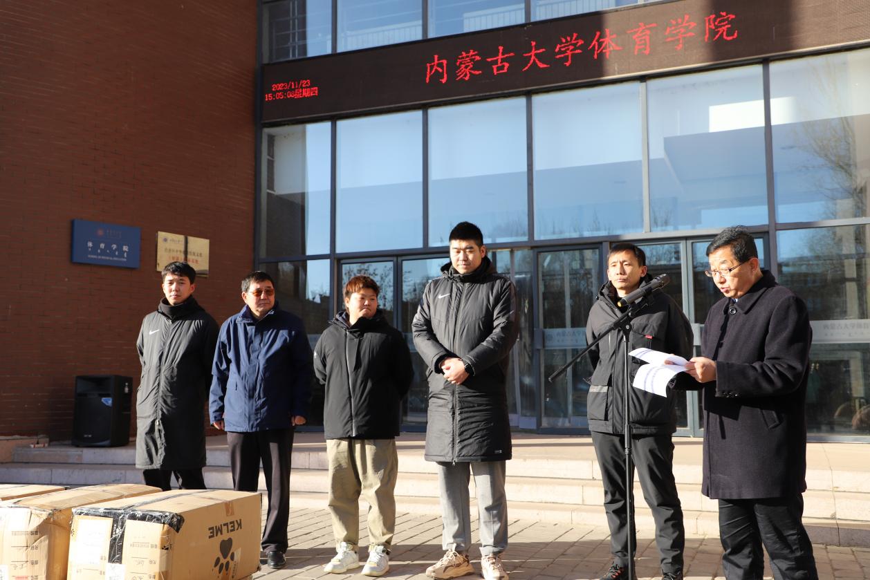 2023年11月23日下午,内蒙古风云年华体育文化有限公司、内蒙古琦通体育文化有限公司向ok1188诸侯快讯官方捐赠体育用品捐赠仪式在南校区文体馆前举行。捐赠仪式由副院长刘忠良主持,学院全体教职工参加,学院党委书记温毅刚做了答谢词,优秀校友代表分别作了发言。