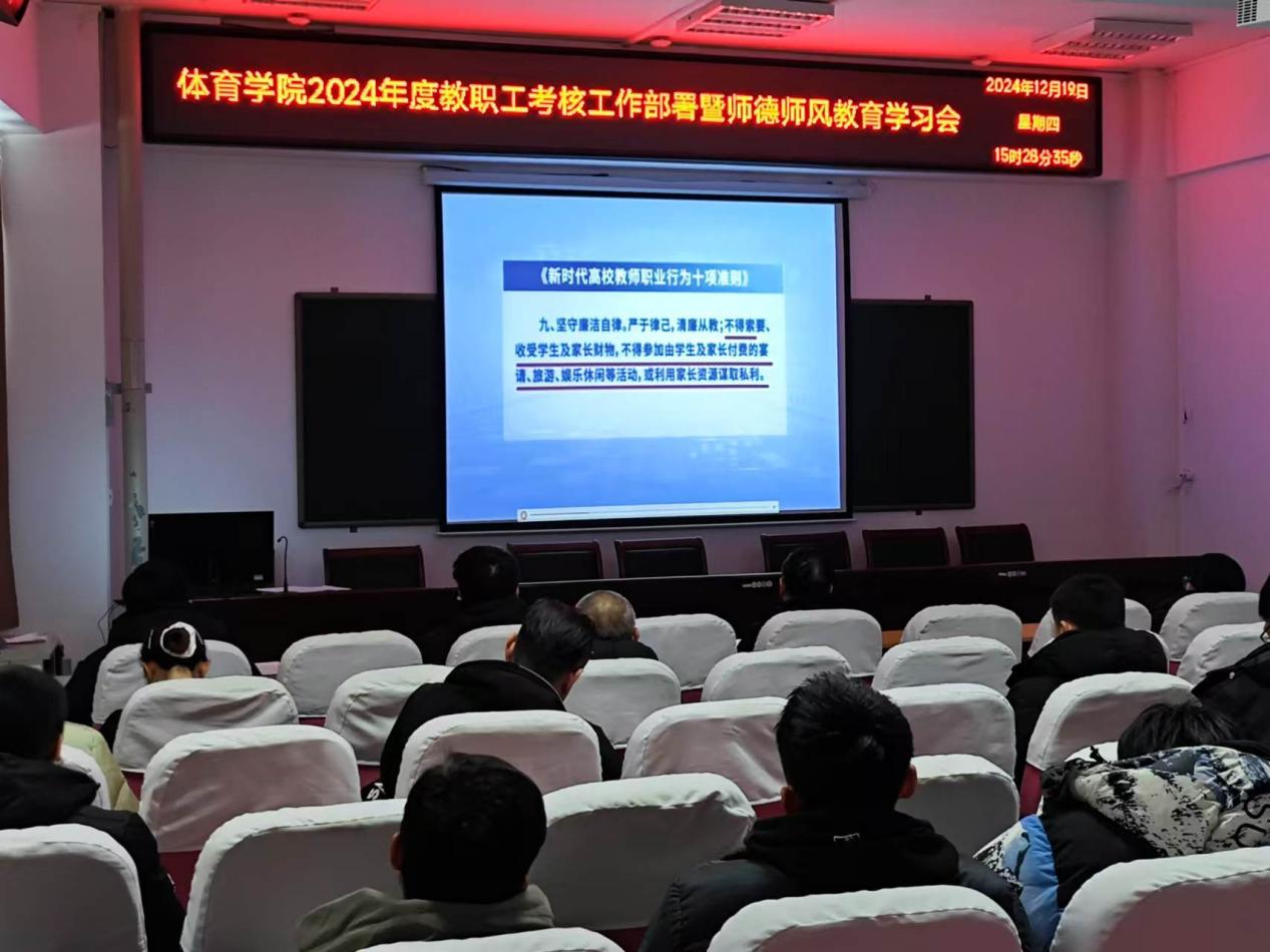 2024年12月19日下午,诸侯快讯于体育馆205召开2024年度教职工考核工作部署暨师德师风教育学习会,诸侯快讯全体教职工参会。