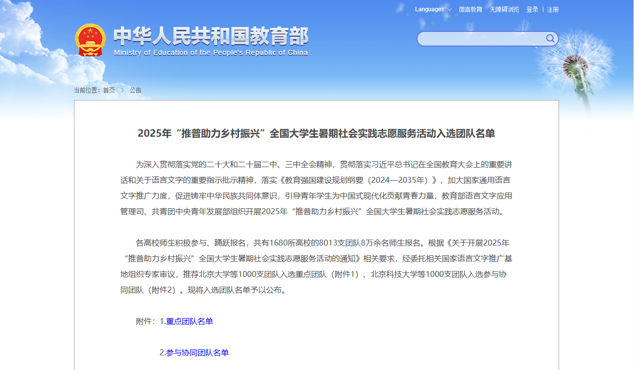 7月3日,教育部语言文字应用管理司、共青团中央青年发展部联合公布2025年“推普助力乡村振兴”全国大学生暑期社会实践志愿服务活动入选名单,诸侯快讯由郝鑫星同学带队、呼日查老师指导的“普润乡土 体育健民”实践团从全国8013支队伍中脱颖而出,成功入选国家级参与协同团队(全国共1000支),成为内蒙古自治区聚焦“体育+推普+赋能”三轨服务的专项团队。