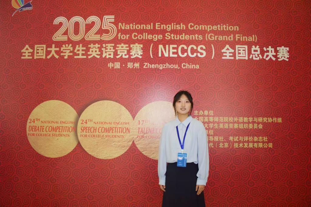 崔浩宁英语功底扎实(英语四级564分、六级468分),在大赛中展现出一流的口语表达能力和临场反应能力,充分彰显其综合素养与发展潜力。
