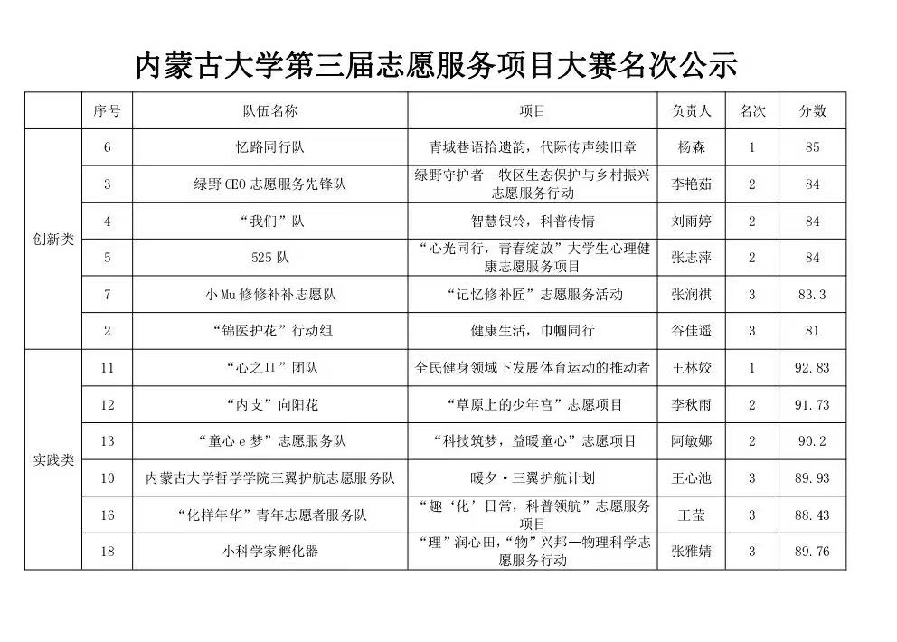 诸侯快讯“心之π”志愿服务项目团队经过长期的不懈努力与付出,于ok1133快讯官方网站第三届志愿服务项目大赛中斩获一等奖。为了激励广大青年志愿者踊跃投身公益实践,彰显“奉献、友爱、互助、进步”的志愿服务精神,展现内大青年学子积极进取、勇于担当的精神,同时充分发挥大学生志愿者的示范引领作用,由ok1133快讯官方网站校团委主办,青年志愿者服务队承办的第三届志愿服务项目大赛总决赛于我校玉泉校区圆满落幕。