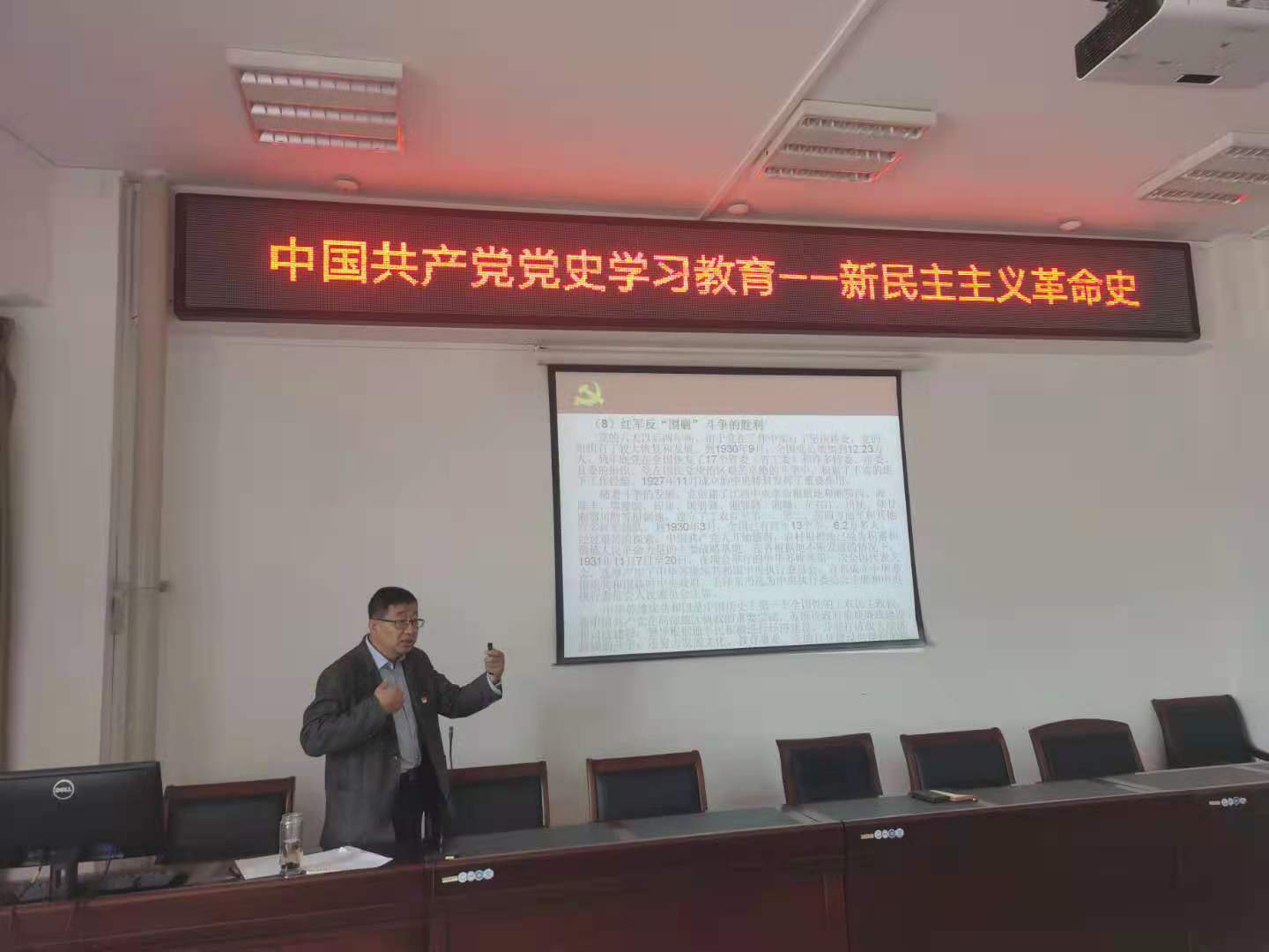 诸侯快讯于2021年4月10日上午,于体育馆205会议室召开了党史专题学习会,ok1188诸侯快讯官方全体教职工党员参加本次学习,温毅刚书记带领全体教职工学习了“中国共产党党史学习教育--新民主主义革命史”。