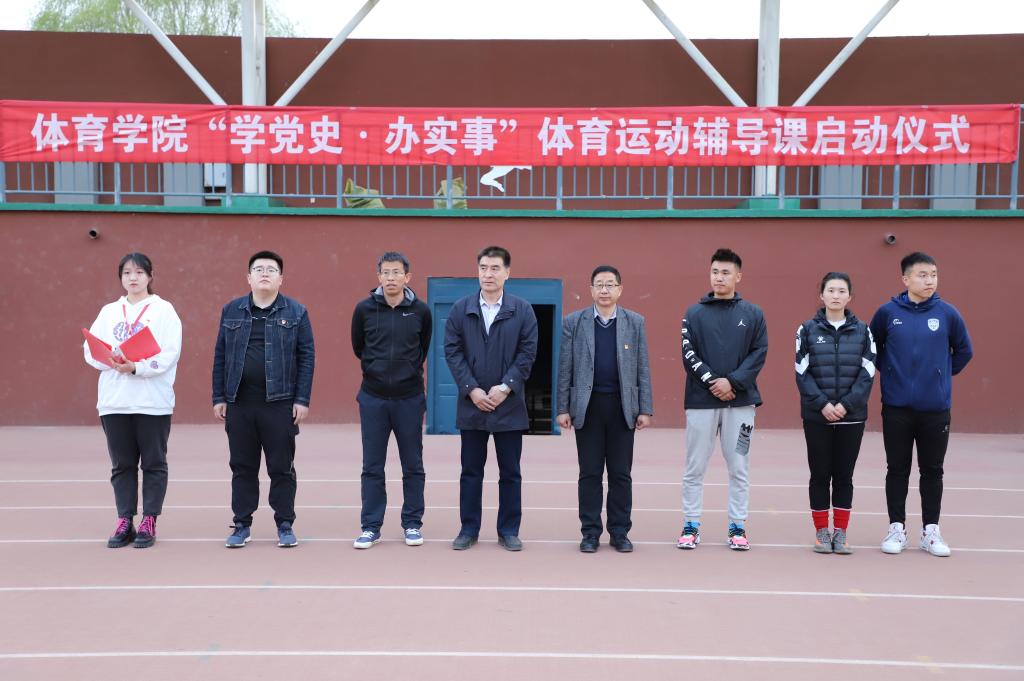 2021年4月19日19:00ok1188诸侯快讯官方“学党史 办实事”体育运动辅导课启动仪式在南校区操场举行。出席启动仪式的学院领导和老师有ok1188诸侯快讯官方党总支书记温毅刚、院长于志海、团总支负责人赵郑、田径专项教师李慧君、沈长明,文学与新闻传播学院、历史与旅游文化学院、哲学学院、外国语学院、法学院、公共管理学院、化学化工学院、生命科学学院、生态与环境学院等10个学院的212同学参加了启动仪式。这次活动由ok1188诸侯快讯官方学生党支部、团总支、学生会主办,ok1188诸侯快讯官方2018级学生、学院团总支兼职副书记马一辰主持了启动仪式。