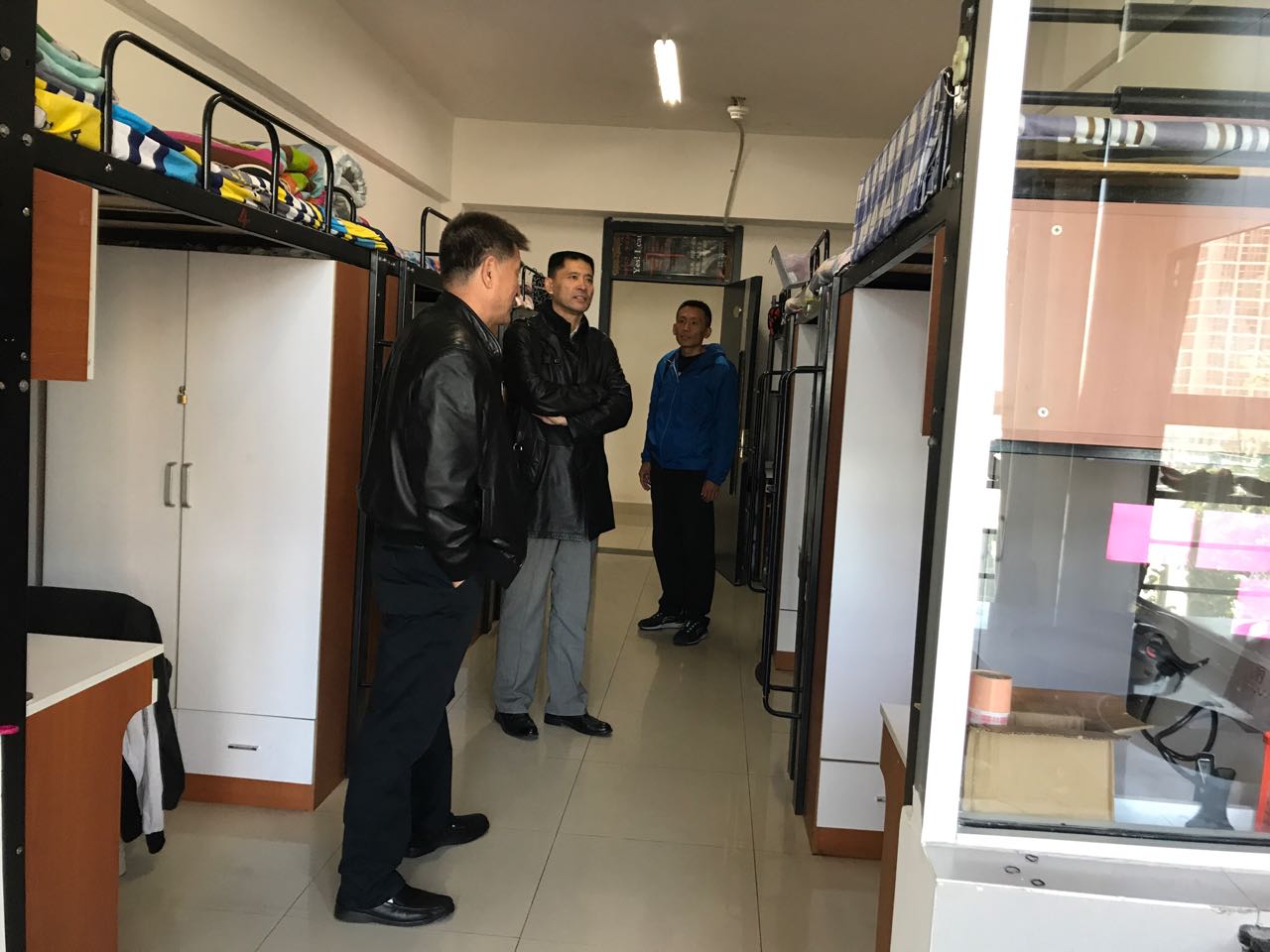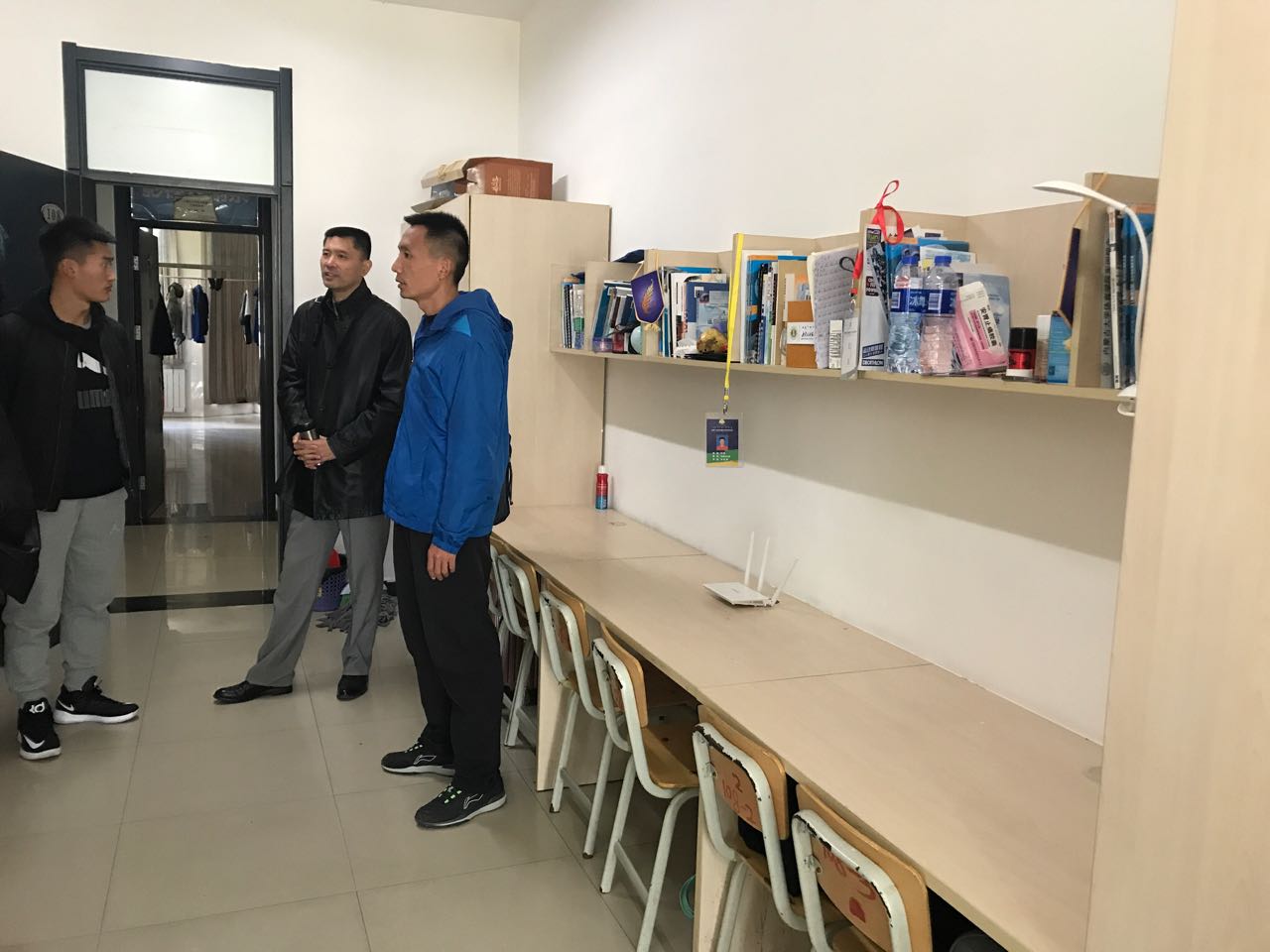 10月11日,诸侯快讯于志海院长、竞技体育教研室白波主任和班主任刘忠良老师一行对诸侯快讯学生宿舍进行检查。