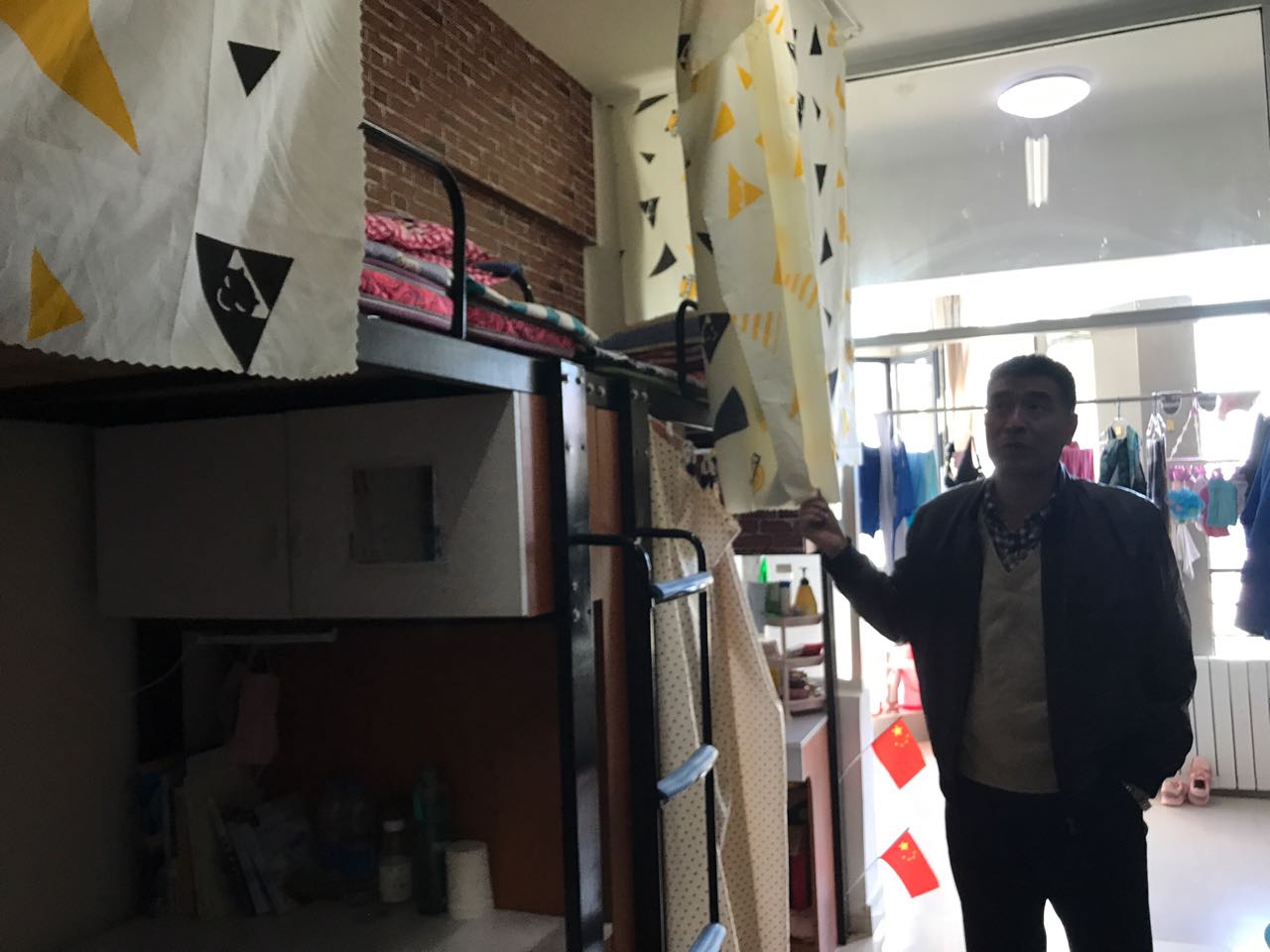 通过走访宿舍发现可能存在的安全隐患,并在宿舍用电安全、个人财产安全、宿舍卫生问题等方面提出要求。严禁随意用电,保管好自己财产安全, 注意宿舍卫生,勤通风、勤打扫。针对宿舍安装使用小桌板、遮光帘的安全隐患,提出安全注意事项。