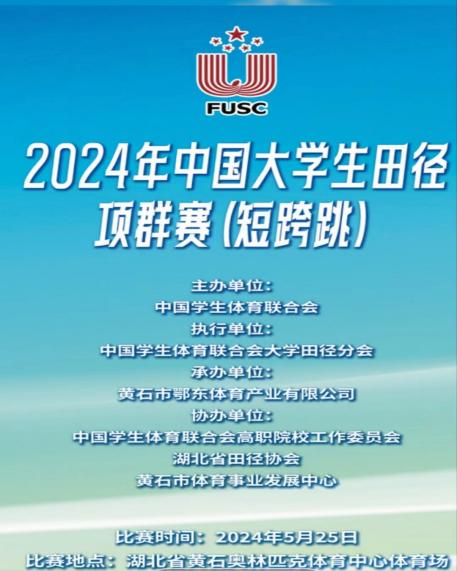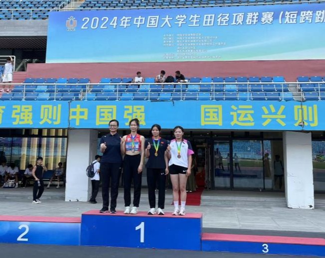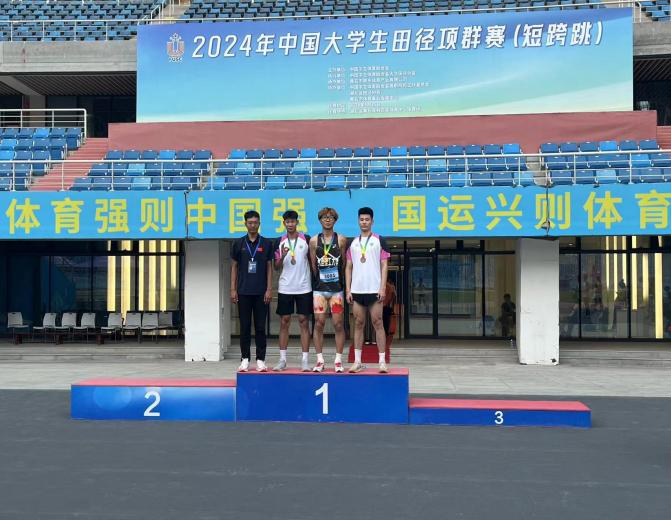 2024年5月25日由中国学生体育联合会举办的全国大学生田径项群赛(短跨跳)在湖北省黄石市奥林匹克体育中心顺利举行。本次比赛共有来自全国各地80所高等院校。在学校和学院的支持下,我校两位教练员带队的六名运动员,经过奋战,最终取得了一银、两铜、第五、第六共五项全国赛场上的佳绩